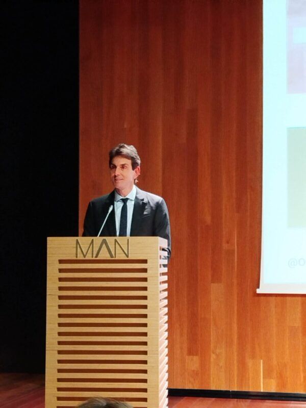 A continuación tomó la palabra el Sr. Svaiter, quien agradeció la presencia de todos los asistentes, así como que se haya facilitado la celebración del evento en el MAN. Este es el primero de una serie de actos que van a tener lugar como conmemoración de los 100 años de Oficemen. Anunció el programa del acto, consistente en tres presentaciones: un vídeo, un libro y un sello. El vídeo explica la historia y las características de Oficemen, mientras que el libro es un homenaje a todas las personas que han hecho posible sus 100 años de existencia.