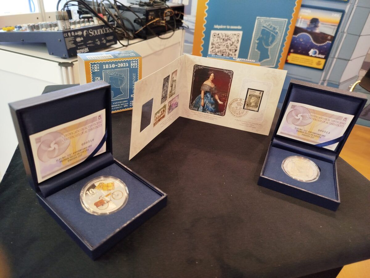 El pasado jueves, 25 de septiembre de 2025, tuvo lugar en la Plaza Mayor de Madrid la presentación del sello y la moneda conmemorativa “175 años del primer sello de Correos en España”, coincidiendo con el acto de inauguración de la 55ª Feria Nacional del Sello.
